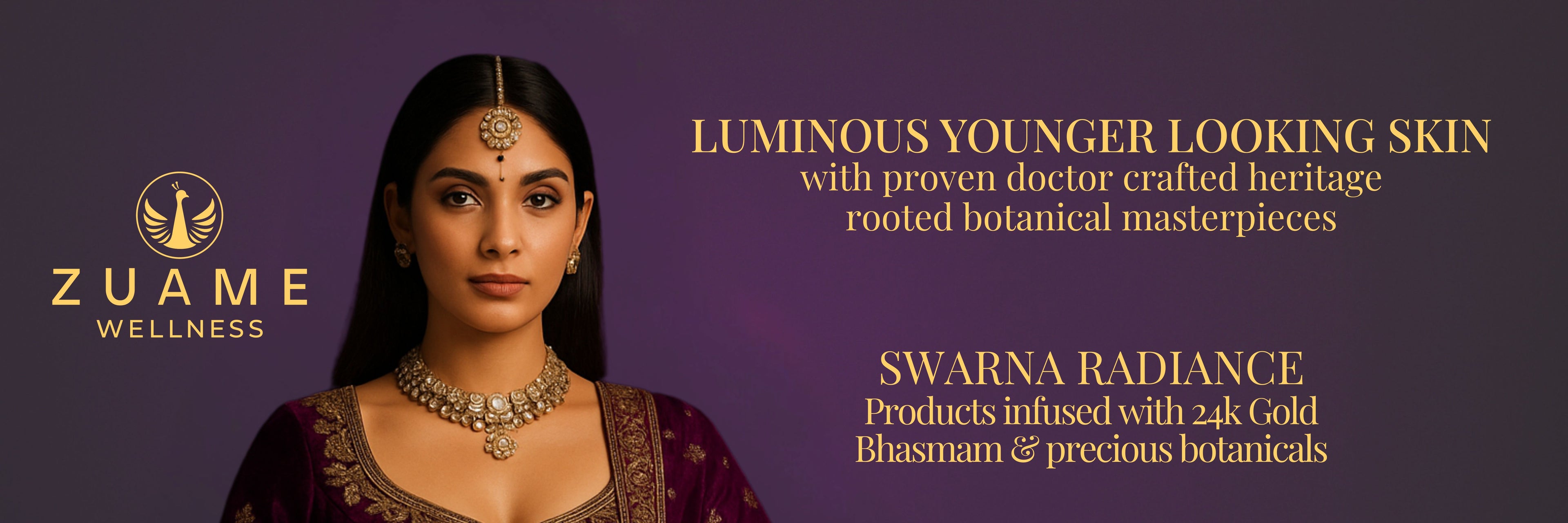 The Swarna Radiance Collection incorporates 24k Gold Bhasmam, used since ancient times for its healing, beautifying, age defying and luminous properties, along with other precious naturals to synergistically deliver amazingly quick results to heal, tone & illuminate your skin, for that radiant & dewy fresh look.