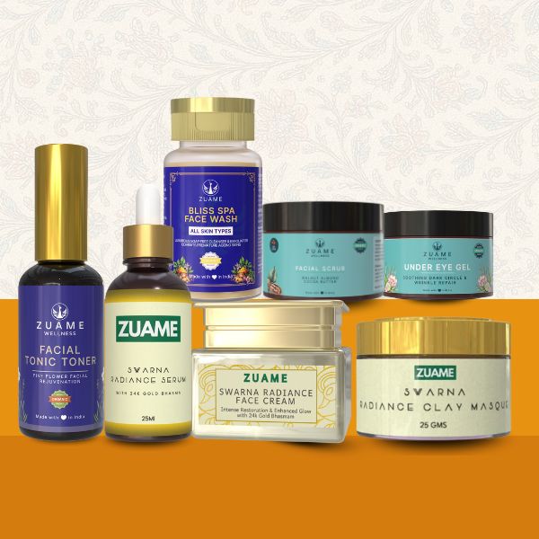The Swarna Radiance Ritual has been formulated with your desire to transcend your skin conditions. Powered by 24k Swarna Bhasma (Ayurvedic Ritually Processed Gold) known to enhance longevity and help nutrients reach the inner layers of the skin. Supported by precious botanicals for an all rounded sensuous delightful experience, the Swarna Radiance Ritual helps fade pigmentation, fix blemishes & transform dull, uneven & tired looking skin into youthful, luminous show stopping skin, making heads turn to look at you again and again.