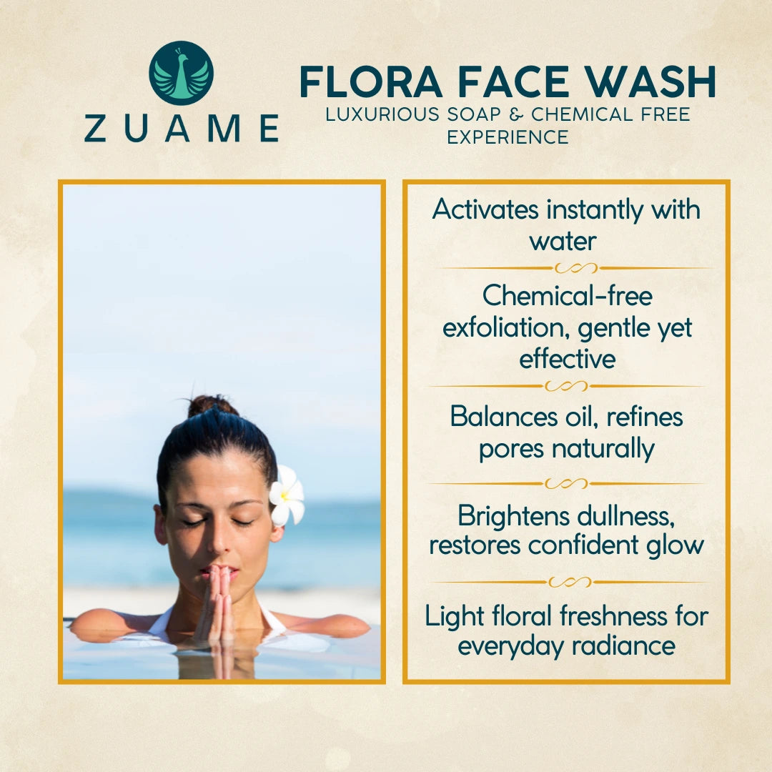 Flora Face Wash is suitable for all skin types, and suitable for anyone over three years of age. Use it as a part of a beauty process along with ZUAME Herbal Face Pack and Exfoliating Scrub to keep your skin looking fresh and radiant.